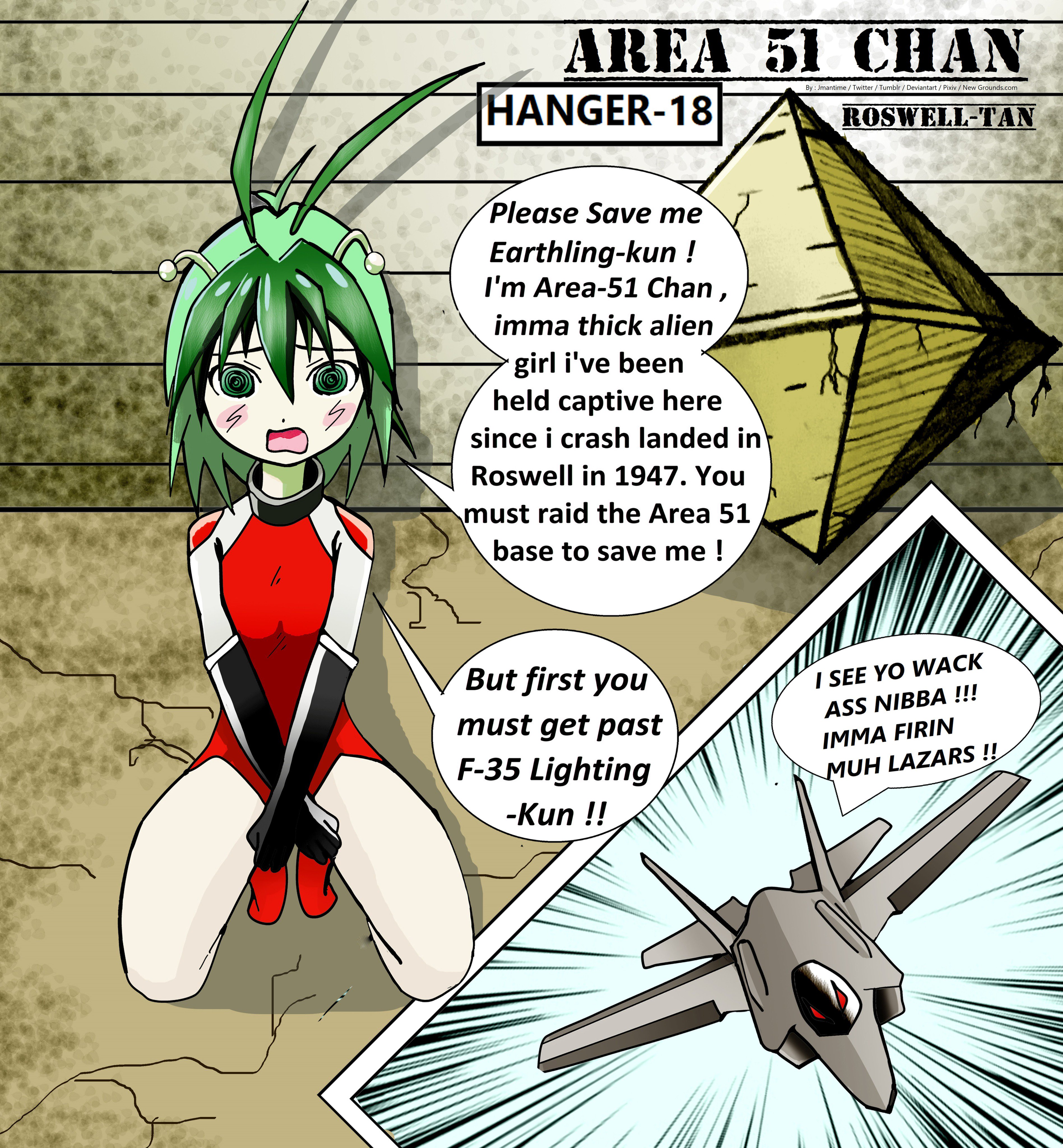Jmantime On Twitter My Version Of Area 51 Chan Roswell Tan A Thick Moe Anime Girl Being Held At Area 51 But F 35 Lighting Kun Guards The Base So Raiding It Is